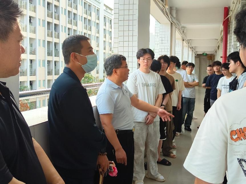 党委书记许国炯,党委副书记、院长李梓郡,党委副书记翟周,副院长罗小燕、何洋带领党政办主任、系主任、教工党支部书记、辅导员、学生干部共30余人,分批次深入学生宿舍海涵、海怡、海虹,开展新学期宿舍走访慰问与安全专项检查活动,为同学们送去新学期的第一份温暖与嘱托。